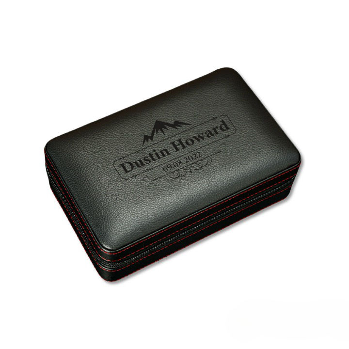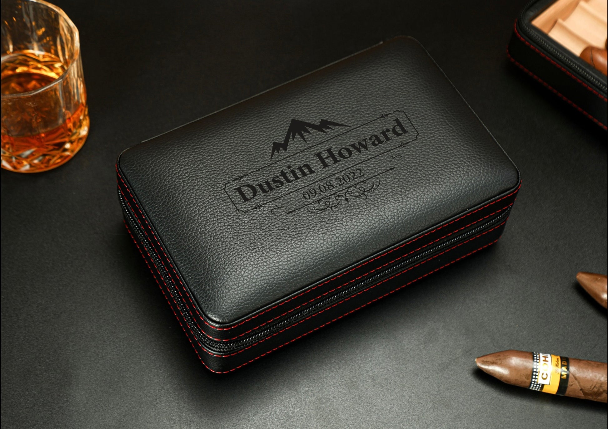 But what truly makes the “Tobacconist’s Grandeur” exceptional is the option for personalisation. We understand that every cigar aficionado is unique, and so should their storage solution be. Engrave your name, a special date, or a meaningful message on the leather exterior. It’s not just a cigar box; it’s a reflection of your individuality and your commitment to the finest things in life.